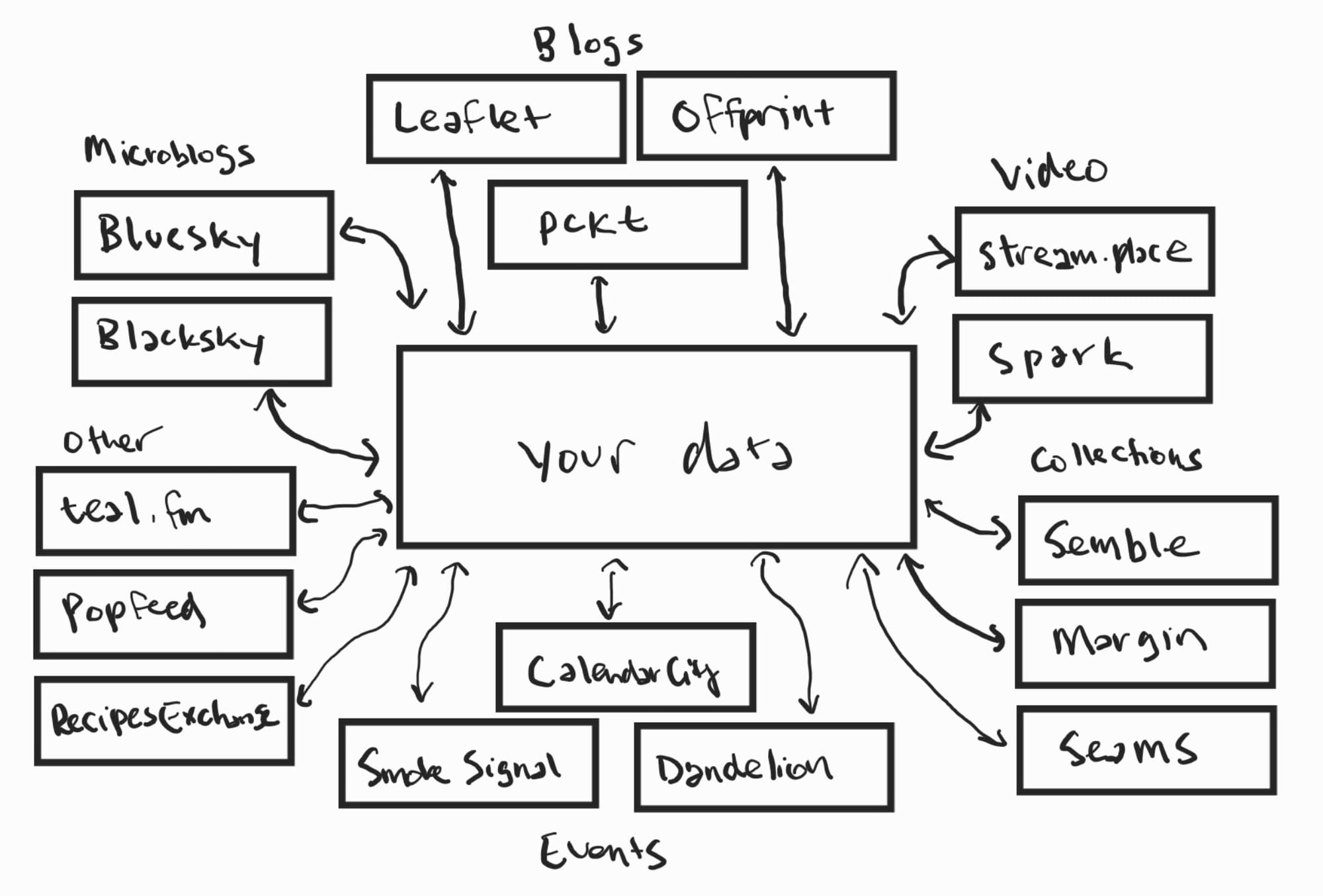 The Atmosphere, as you can see above, already has countless apps you can use. There are Twitter-like apps such as Bluesky and Blacksky; blogging services like Leaflet, Offprint, and pckt; collection and annotation tools like Semble, Margin, and Seams; and I can go on and on because the ecosystem is expanding by the day. And this is just a small portion of the existing Atmosphere - I couldn't fit all of the different apps because there are just. so. many. Perhaps in a separate post.